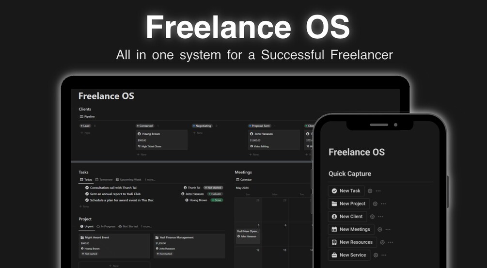 Are you a freelancer struggling to manage your projects, clients, and finances all at once? Our Freelance Operating System Notion Template is here to revolutionize the way you work! This all-in-one digital workspace is meticulously designed to help freelancers stay organized, efficient, and stress-free.